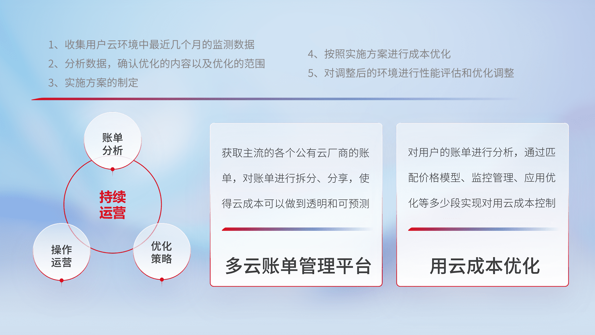 监控业务系统资源开销,,,,对资源的消耗精确计量,,实现费用的透明化管理,,,,不断提升资源使用率,,调整资源购买方式,,,,降低资源费用成本,,用云成本可预测、、、、用云费用可优化,,云资源配额有据可依。。。。